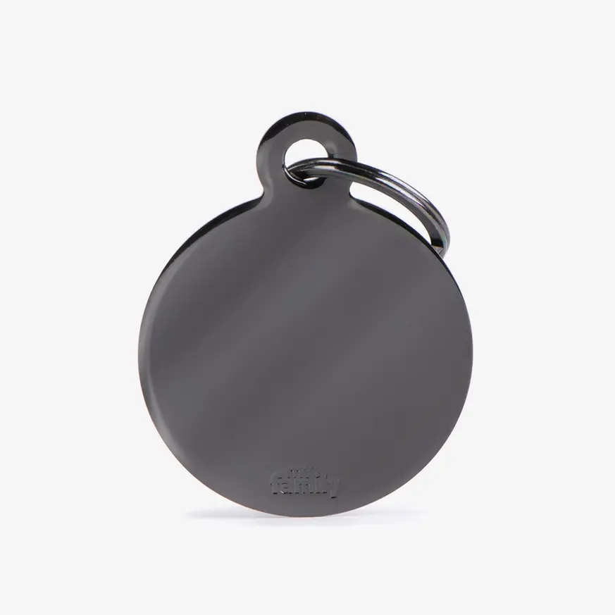 Plaquita de identificación para perros de latón cromado negro. Se puede personalizar por ambas caras con un grabado legible y duradero. Tiene un grosor de 2mm (generalmente las plaquitas miden 1 o 0.5mm).