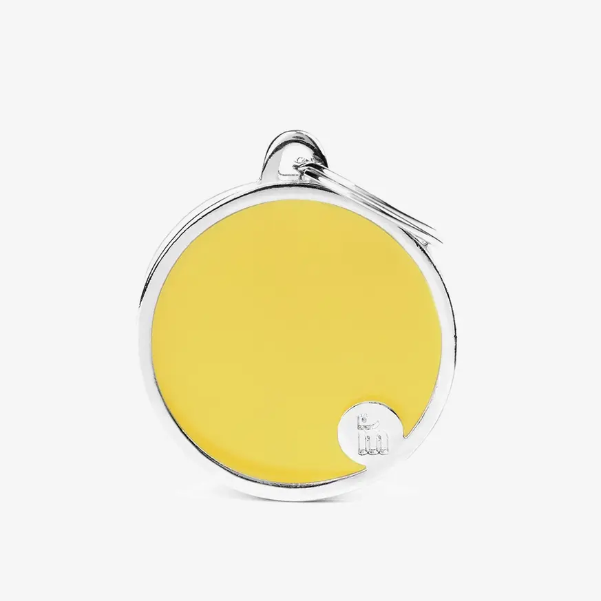 Plaquita de identificación para perros pintada a mano en Italia. Personalizable en la parte trasera con un grabado legible y duradero.