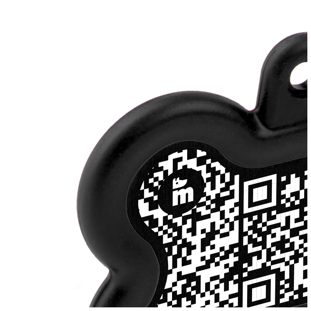 La parte frontal incluye un práctico código QR que se puede vincular a la aplicación gratuita memopet, lo que permite crear un perfil de mascota y localizarla fácilmente en caso de pérdida.