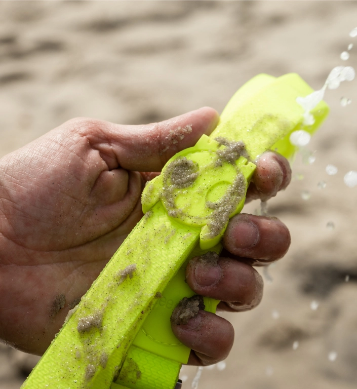 Correa resistente al agua y la suciedad. La correa tiene un recubrimiento de PVC protector llamado Neopro. Tiene un gancho con cierre de rosca para una caminata más segura.