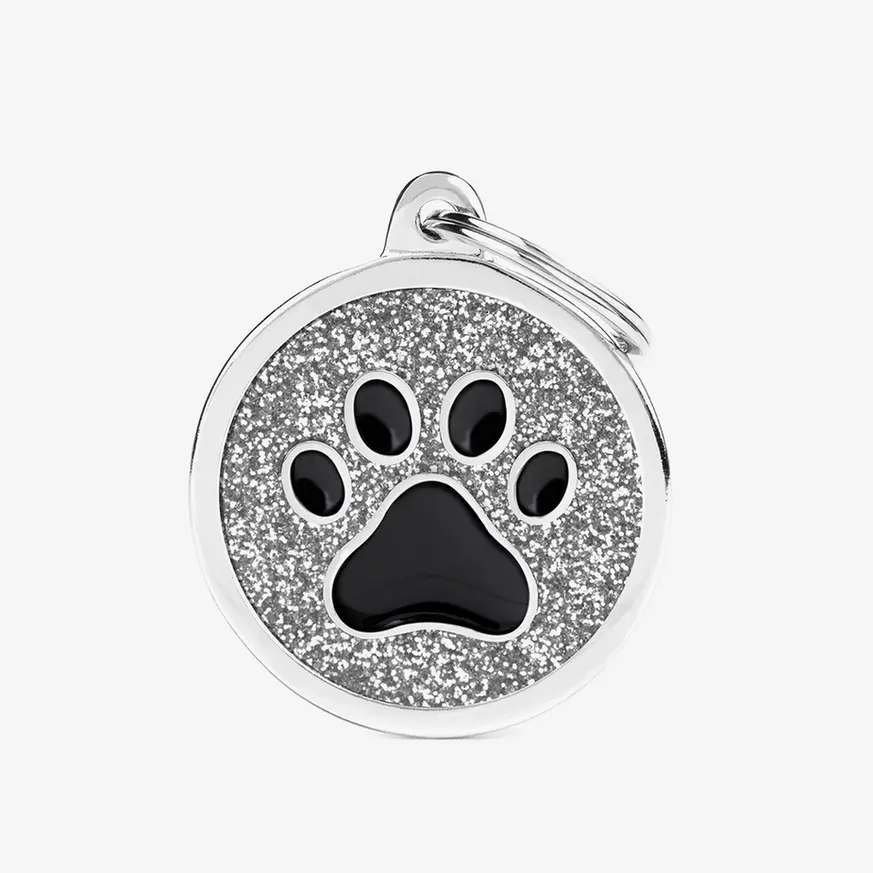 Dale un poco de brillo a tu peludo con las plaquitas shine. Fabricada con todo lujo de detalles en Italia, está esmaltada con escarcha a mano. Personalizable en la parte trasera con un grabado legible y duradero.