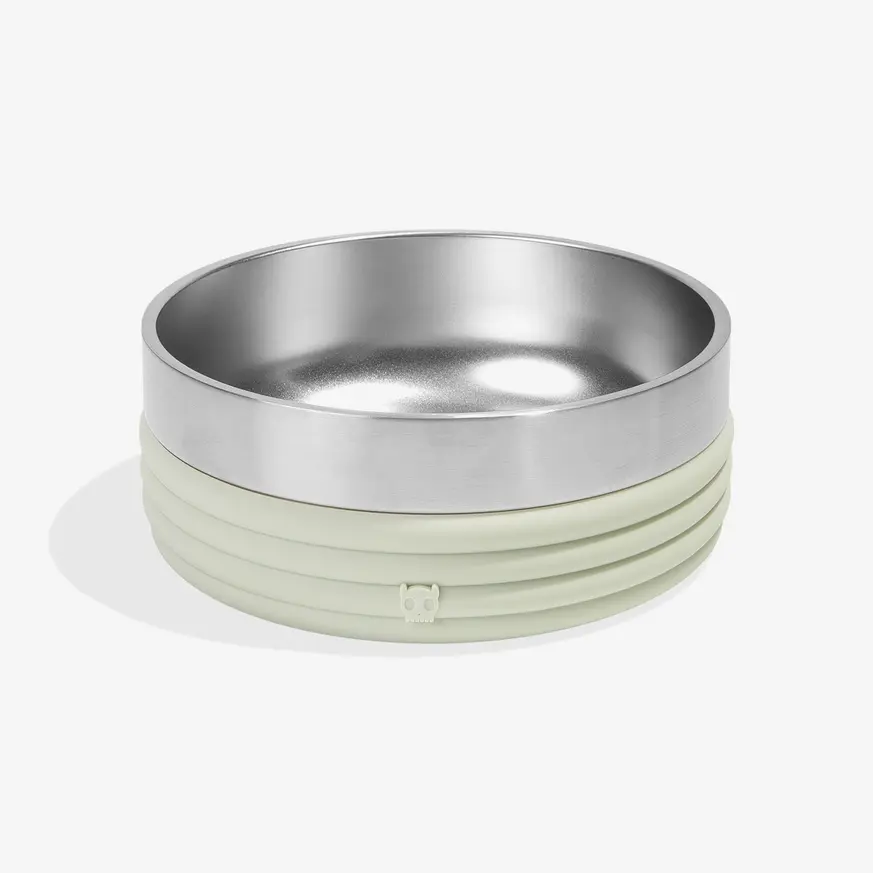TuffBowl, fabricado para ser resistente. Es un plato para perros fabricado con acero inoxidable de doble pared que es resistente a la corrosión y al óxido. Tiene capacidad para hasta 5 tazas de agua o alimento y es muy fácil de limpiar. Simplemente colóquelo en el lavaplatos (se recomienda en la rejilla superior) y quedará como nuevo. Tiene una base de silicón que evita que se mueva mientras tu perro bebe o come de él.