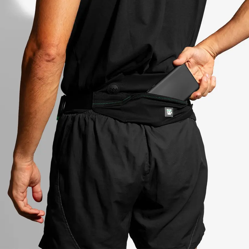 También tiene detalle reflectante para visibilidad en la noche. El puerto para audífonos, el bolsillo resistente al agua en el que caben teléfonos incluso más grandes y el gancho para las llaves son características que harán que tu carrera sea más placentera.